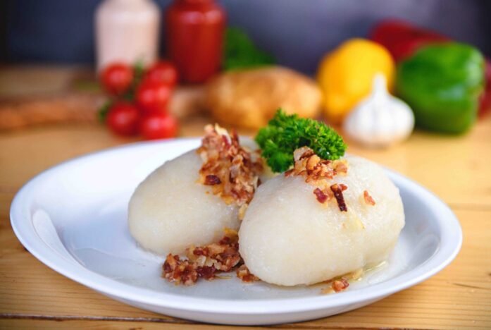 Hearty Lithuanian zeppelins filled with seasoned meat, served warm for a comforting homemade meal. Made fresh daily and prepared with care.