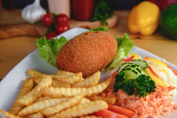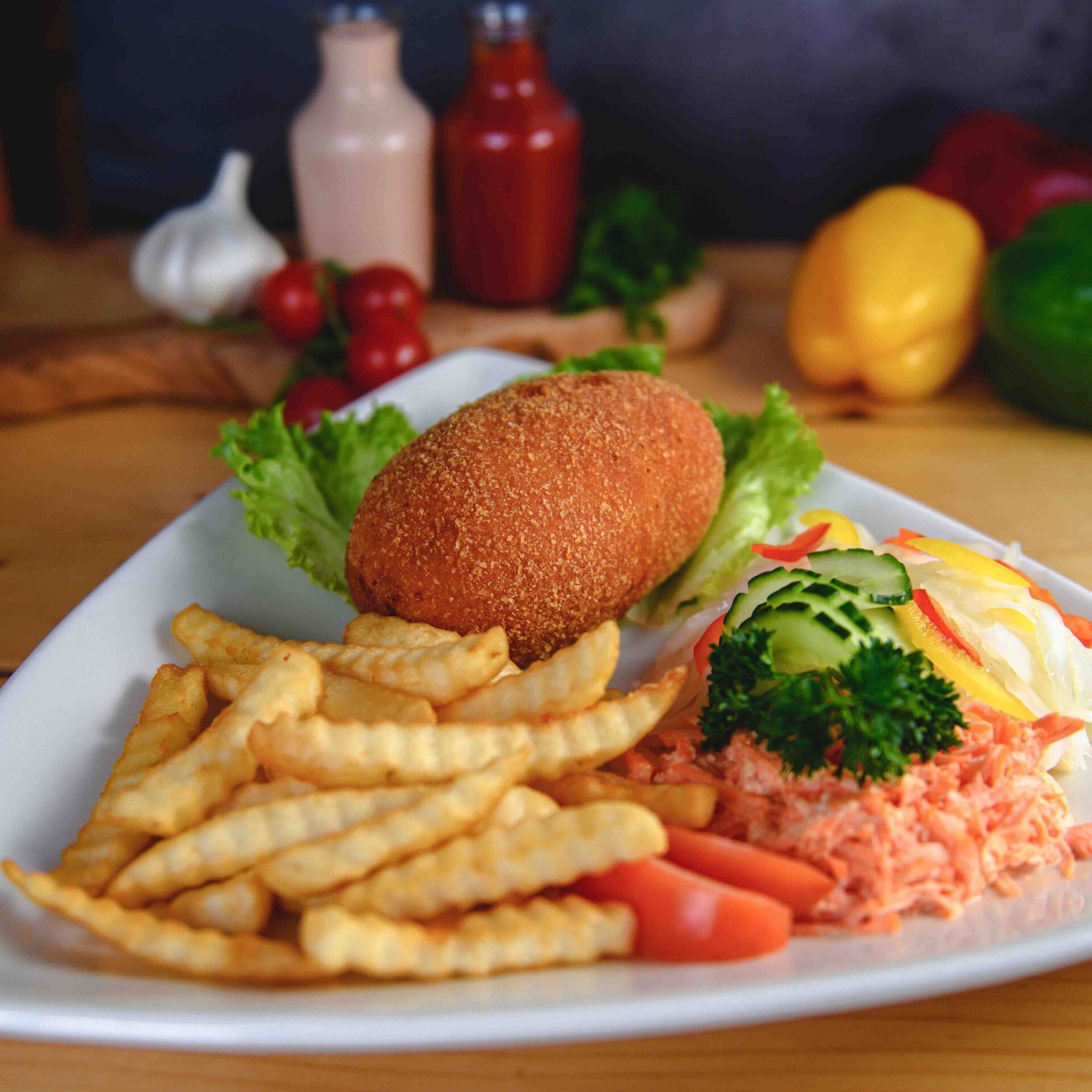 Chicken breast wrapped around garlic butter, fried crisp and served warm with a juicy center that brings a rich and simple flavor to the plate.